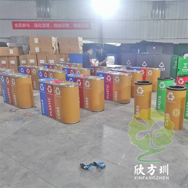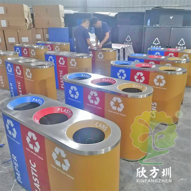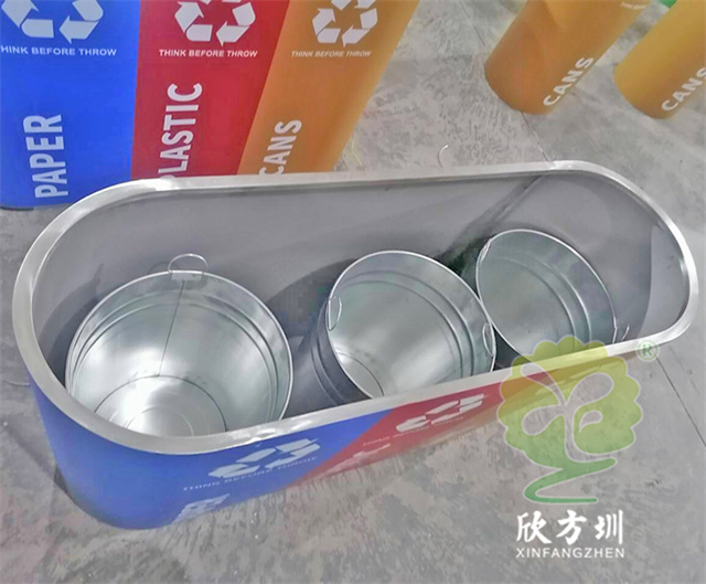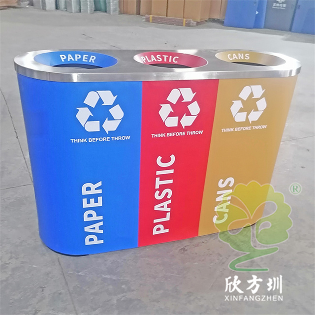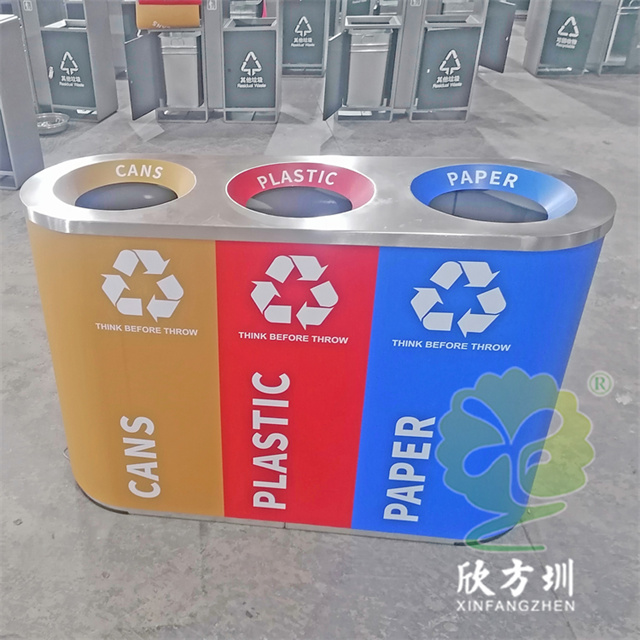 室內(nèi)商用直投口三分類不銹鋼垃圾桶采用了201不銹鋼1.0mm厚度做的外筒,桶身表面貼三色英文噴繪貼紙,表面可以做電鍍、拉絲防指紋處理、噴塑或者金屬本色等工藝,果皮箱三分類投口坡面設(shè)計,支持定制材料顏色尺寸,這款垃圾桶可以提升公共環(huán)境的整體美觀度,可以免費油墨絲網(wǎng)印刷國標(biāo)中英文分類標(biāo)識及l(fā)ogo。