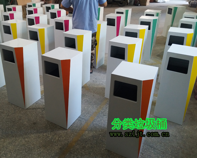 時尚高檔鋼制垃圾桶采用優(yōu)質(zhì)冷軋鋼材料經(jīng)激光切割剪鈑下料、折彎、沖壓、焊接、打磨、等工藝:表面經(jīng)過除油、噴砂防銹處理后,再進(jìn)行酸洗磷化處理;表面清理干燥后整體進(jìn)行靜電噴涂或烤漆處理,靜電噴涂是經(jīng)過流水線高溫固化爐固化后再出爐冷卻,加工后的塑粉附著力強,不易剝落,這樣防銹效果才會好。