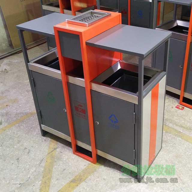 戶外社區(qū)鋼制分類垃圾桶采用優(yōu)質(zhì)冷軋鋼材料經(jīng)激光切割剪鈑下料、折彎、沖壓、焊接、打磨、等工藝:表面經(jīng)過除油、噴砂防銹處理后,再進(jìn)行酸洗磷化處理;表面清理干燥后整體進(jìn)行靜電噴涂或烤漆處理,靜電噴涂是經(jīng)過流水線高溫固化爐固化后再出爐冷卻,加工后的塑粉附著力強(qiáng),不易剝落,這樣戶外防銹效果才會(huì)好。