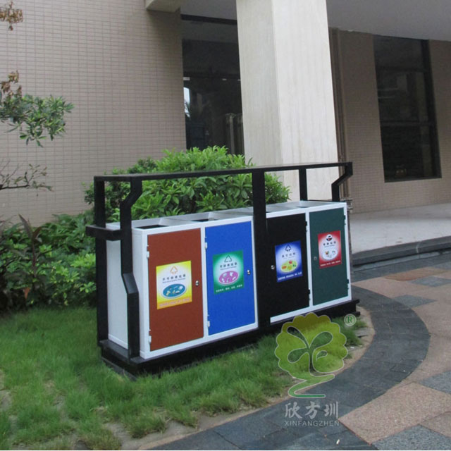 物業(yè)小區(qū)鋼板四分類(lèi)垃圾箱采用優(yōu)質(zhì)冷軋鋼材料經(jīng)激光切割剪鈑下料、折彎、沖壓、焊接、打磨、等工藝:表面經(jīng)過(guò)除油、噴砂防銹處理后,再進(jìn)行酸洗磷化處理;表面清理干燥后整體進(jìn)行靜電噴涂或烤漆處理,靜電噴涂是經(jīng)過(guò)流水線高溫固化爐固化后再出爐冷卻,加工后的塑粉附著力強(qiáng),不易剝落,這樣戶外防銹效果才會(huì)好。