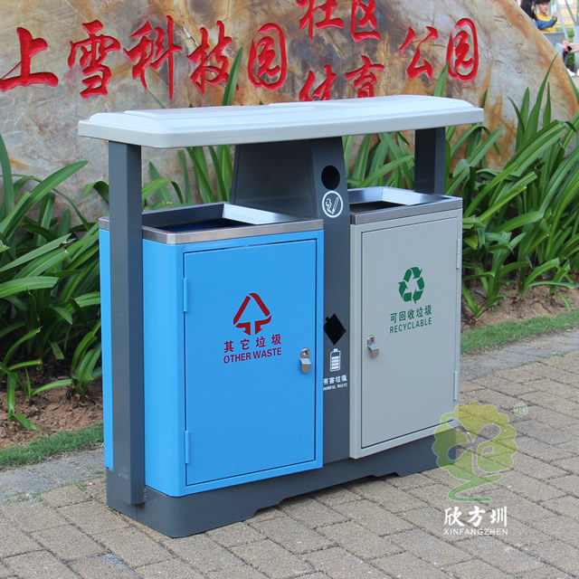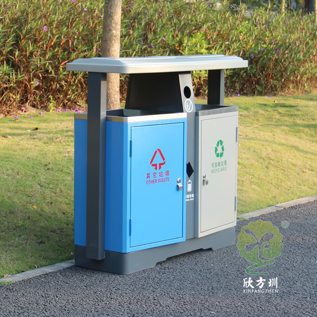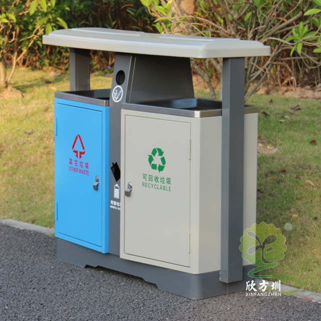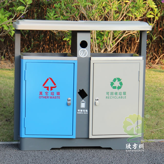 城市發(fā)展日新月異,人們對生活環(huán)境的衛(wèi)生要求也越來越高,沒有人可以容忍自己家園周圍看上去臟、亂、差。整治臟、亂、差,建設(shè)衛(wèi)生文明居住環(huán)境,是大部分城市的基本目標(biāo),居住環(huán)境的衛(wèi)生整治離不開垃圾桶的幫助,甚至垃圾桶本身就能成為城市文明的一道亮麗風(fēng)景線。沒有人愿意親近一個(gè)看上去布滿污漬,臟兮兮,充滿細(xì)菌的垃圾桶,而一個(gè)看上去干凈、衛(wèi)生、美觀的垃圾桶,除了人們更愿意往里面投垃圾外,本身就能起到裝飾美化的作用。欣方圳設(shè)計(jì)生產(chǎn)的室外街道兩分類鋼板垃圾箱就完全滿足這樣的作用。
