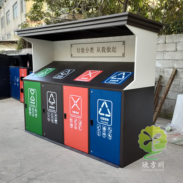 城市道路小區(qū)鍍鋅板四分類垃圾亭