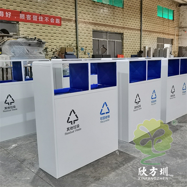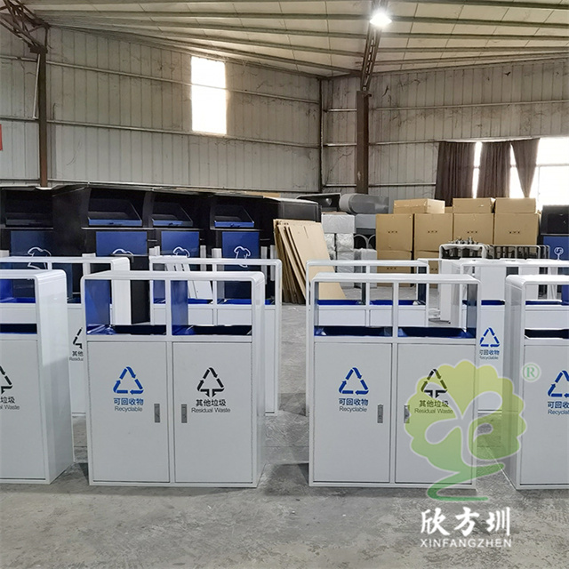 戶外方形烤漆白色鍍鋅板分類垃圾桶產(chǎn)品詳情: |