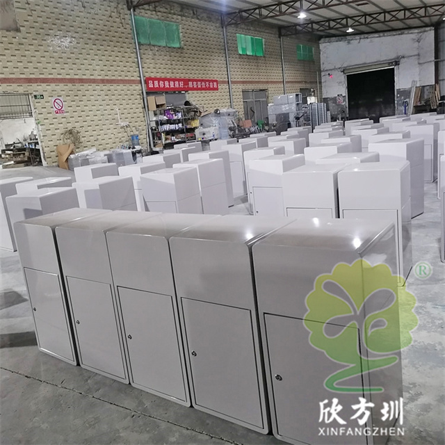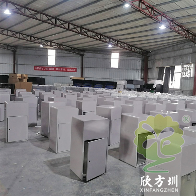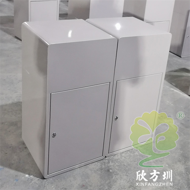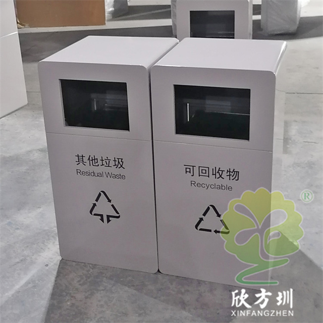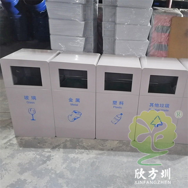 戶外公園景點(diǎn)組合式鍍鋅板分類垃圾桶整體1.0mm厚噴塑外筒,產(chǎn)品規(guī)格:450*450*900mm單個(gè),方形任意組合式多分類設(shè)計(jì),可以選擇用不銹鋼板制作桶身,桶身表面噴涂噴塑了米白色,背后可使用三角鑰匙開始開門取出內(nèi)筒,內(nèi)筒鍍鋅板0.4mm厚,正面絲印了最新國標(biāo)分類標(biāo)識,有現(xiàn)成的網(wǎng)版可以免費(fèi)絲印分類標(biāo)識。