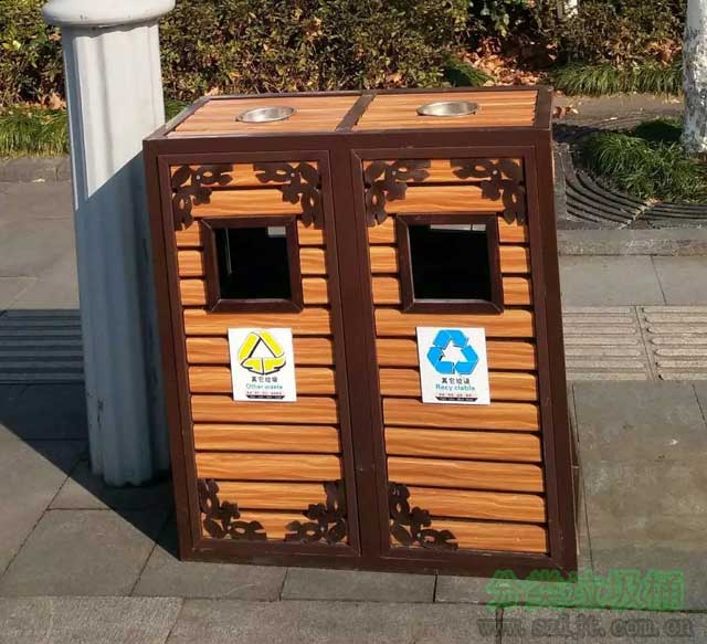 景區(qū)古典鋼木分類垃圾桶長900mm,寬400mm,高950mm,采用優(yōu)質(zhì)進(jìn)口山樟木,經(jīng)過除蟲,防蟻,防腐,烘干等專業(yè)處理后加工成型,經(jīng)久耐用,防腐美觀。此款戶外鋼木分類垃圾桶是分類垃圾桶中的經(jīng)典款式,無論是從外觀,性能還是環(huán)保方面來講,這個(gè)垃圾桶都十分優(yōu)越,尤其適合擺放在花園,公園,小區(qū),學(xué)校,街道,游樂園等場(chǎng)所,備受客戶青睞。