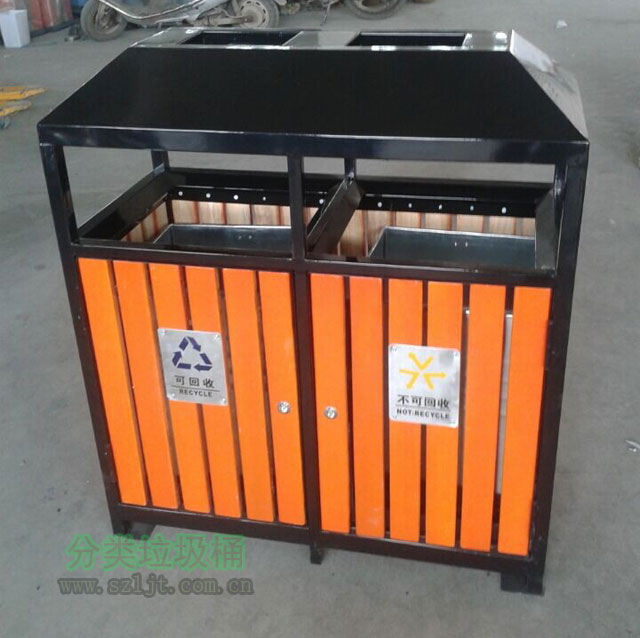 【產(chǎn)品顏色】:以山樟木的原色黃色為主色,覆蓋于桶身;垃圾桶的邊緣的鋼板立柱使用黑色絲??;桶身絲印紅綠兩色標(biāo)牌,分別代表不可回收垃圾與可回收垃圾,顏色對比鮮明和諧,簡潔大方,實用美觀,還可根據(jù)客戶需求定制。