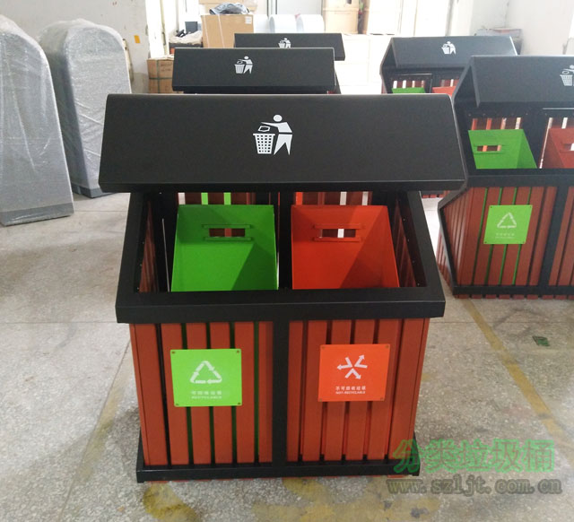 【產(chǎn)品型號(hào)】:玻璃鋼內(nèi)桶鋼木分類垃圾桶XFZ-G64