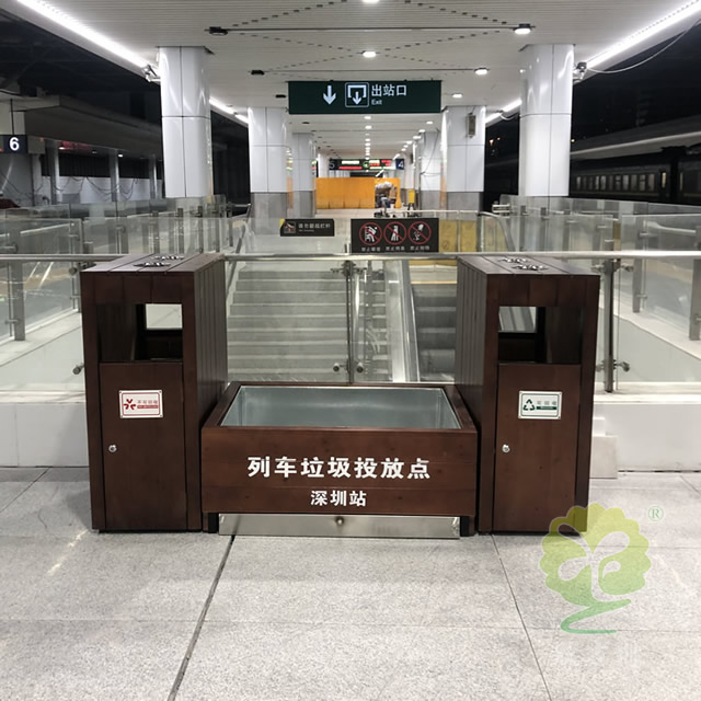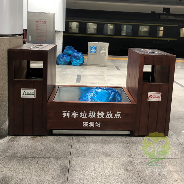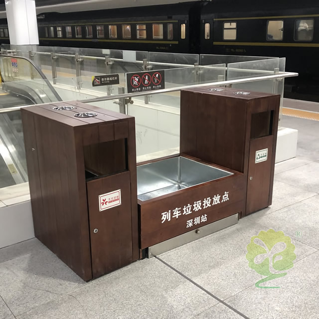 【產品型號】:火車站大型鋼木分類垃圾箱XFZ-G282